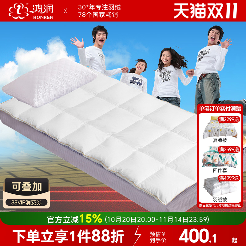 鸿润家纺白鹅绒羽毛学生床垫全棉单人宿舍床褥子四季通用床护垫被