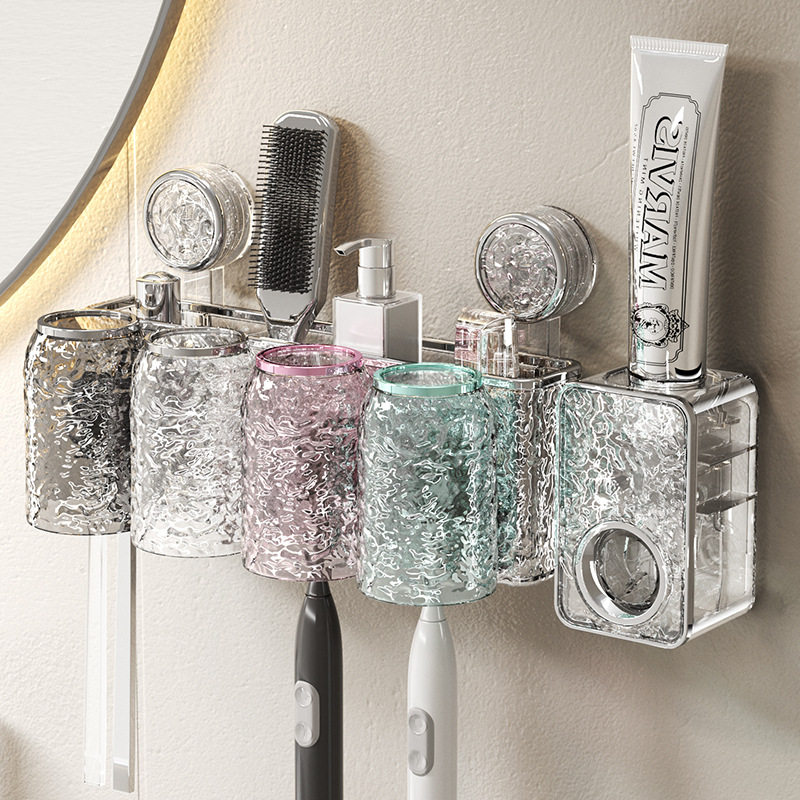 壁挂式牙刷架多孔位漱口杯架卫生间免打孔牙具收纳2025新款置物架