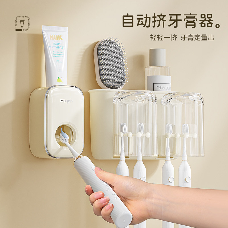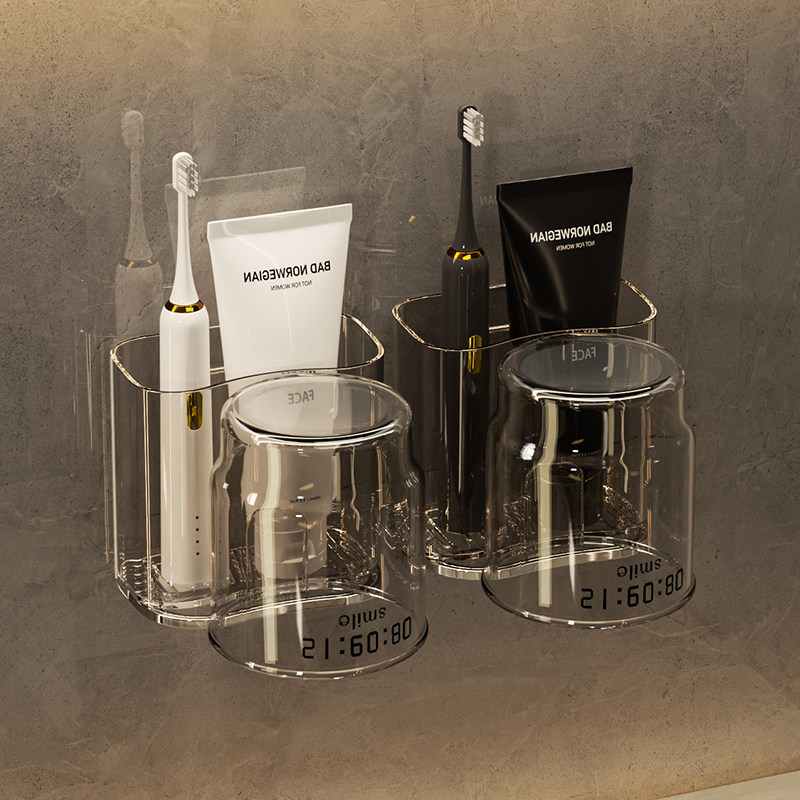 牙刷置物架免打孔漱口杯刷牙杯卫生间壁挂式家庭电动牙膏牙刷架子