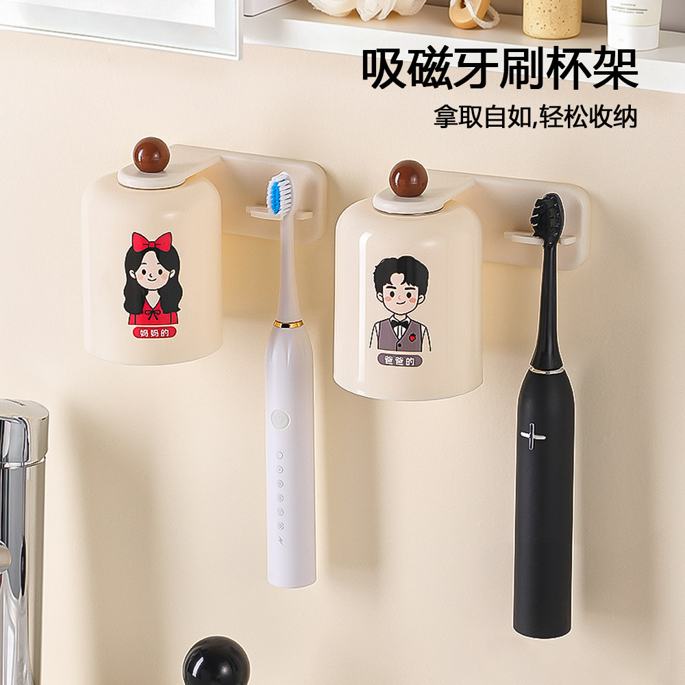 磁吸漱口杯架免打孔牙刷置物架刷牙杯架壁挂式牙刷架洗漱杯情侣款