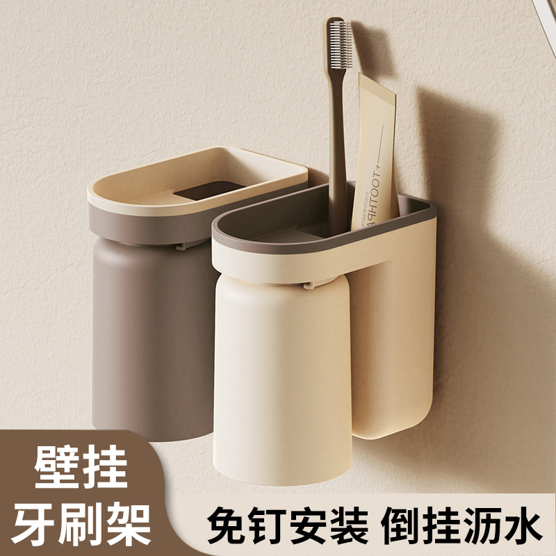 轻奢壁挂式牙刷架卫生间创意牙刷置物架家用洗漱杯刷牙杯收纳架子