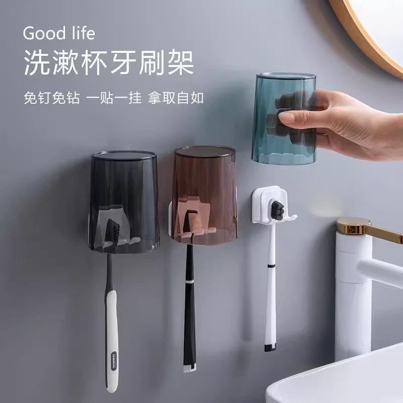 高颜值吸盘牙刷置物架壁挂式免打孔牙刷架新款卫生间刷牙杯漱口杯