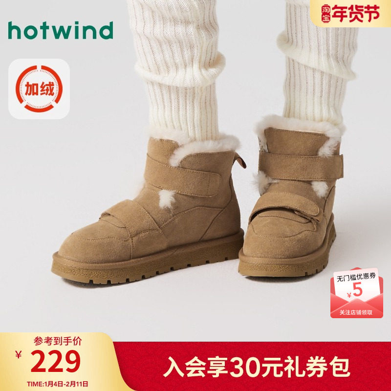 热风女鞋25冬新款女士棉鞋加绒保暖雪地靴松糕底舒适百搭冬靴女