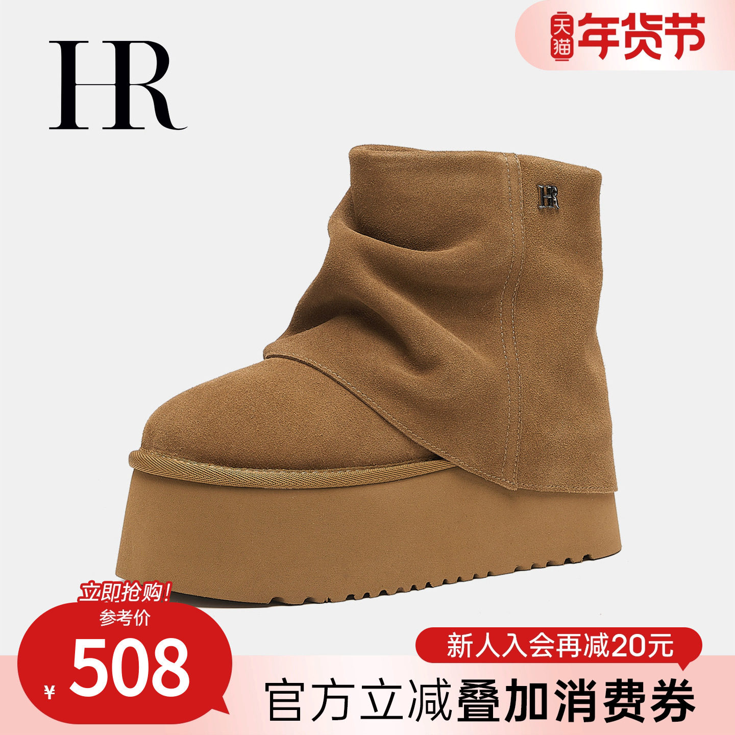 HR赫莲娜堆堆雪地靴2025年冬季新款女鞋子厚底两穿松糕底褶皱短靴