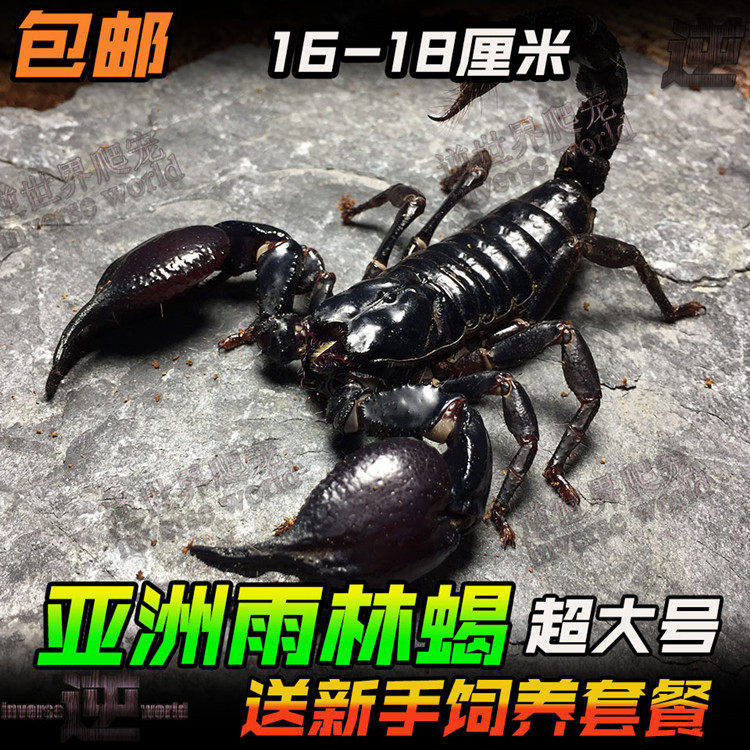 亚洲雨林蝎超大宠物黑蝎子活体18cm温顺无毒可上手爬虫送套餐包活