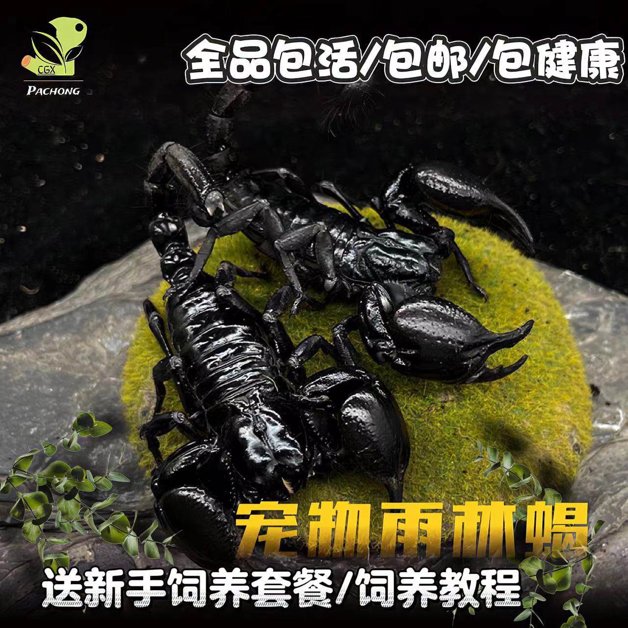 亚洲雨林蝎超大宠物黑蝎子活体 温顺无毒可上手爬虫宠送套餐包活