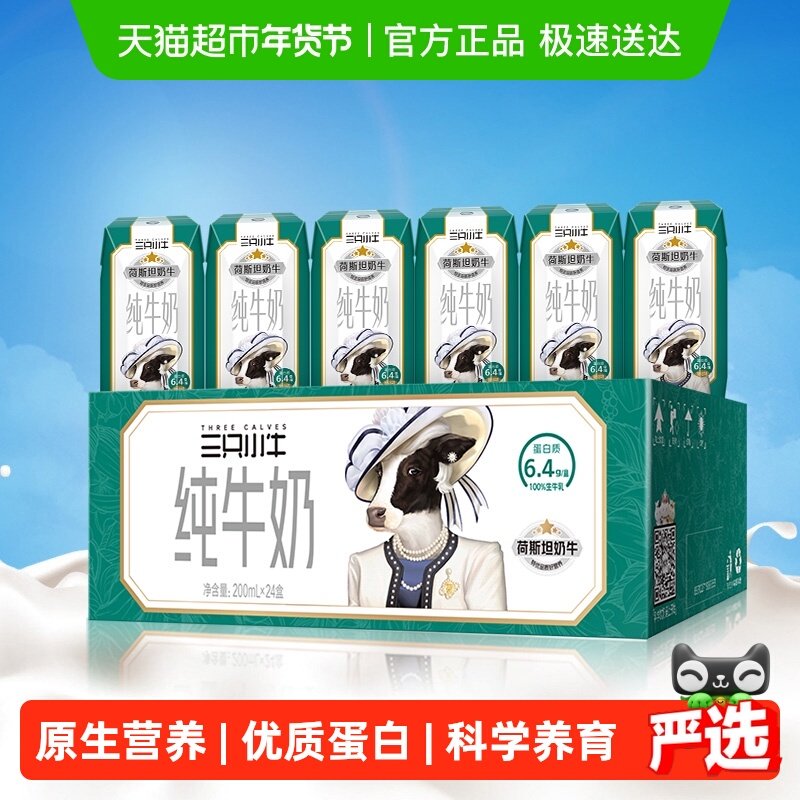 现代牧业三只小牛纯牛奶200mlx24盒x2箱营养牛奶整箱100%生牛乳