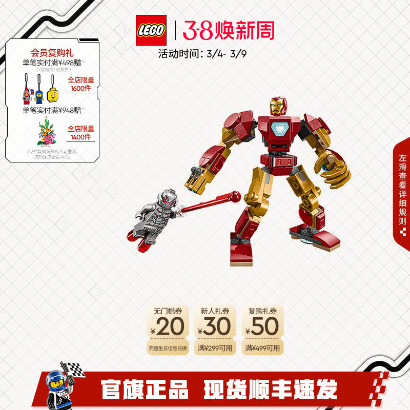 乐高官方旗舰店76307漫威钢铁侠机甲大战奥创积木儿童玩具礼物