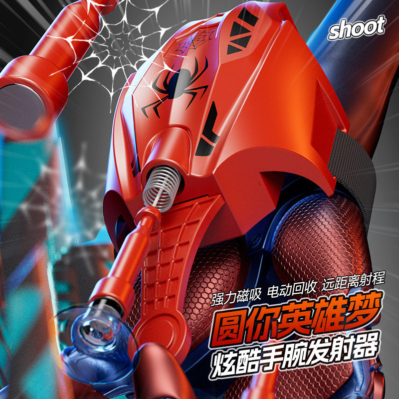 电动蜘蛛侠发射器自动收线手套蛛丝吐丝器可充电男孩COS漫威玩具