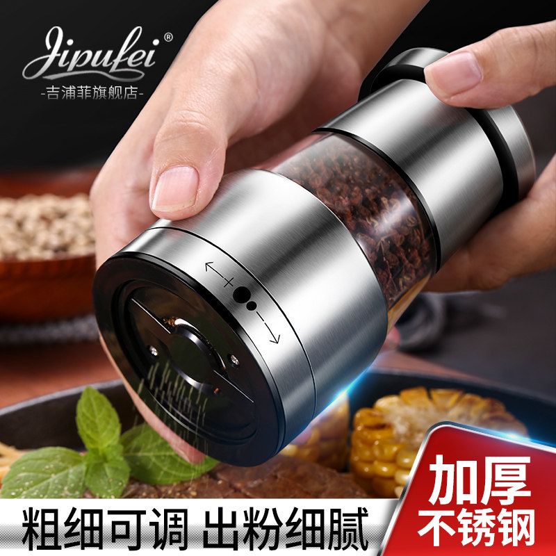 家用胡椒研磨器手动磨海盐胡椒粉神器不锈钢白花椒研磨瓶子调料罐