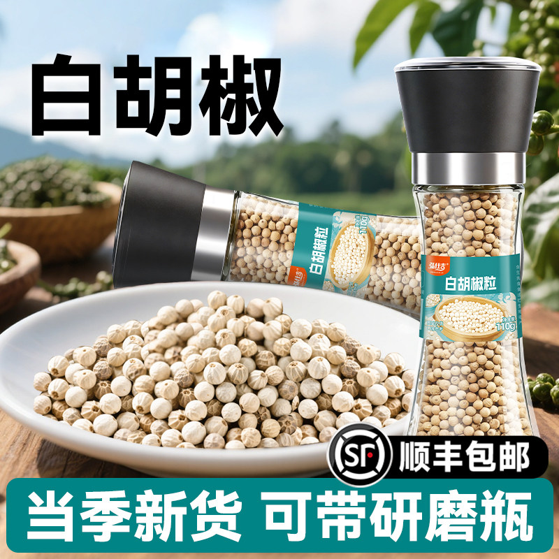 白胡椒粒海南正宗家用煲汤炖肉商用调味料现磨带研磨器纯白胡椒粉