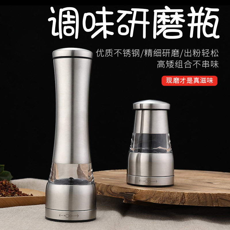 电动胡椒研磨器不锈钢现磨胡椒粉手动花椒海盐自动黑胡椒家用厨房