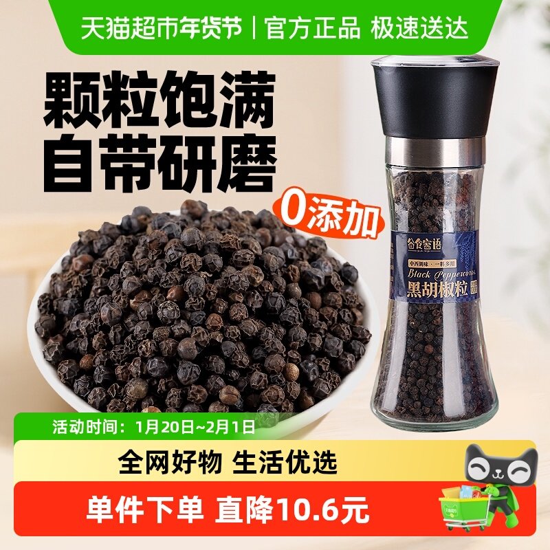 谷食密语原味黑胡椒粒带研磨器现磨胡椒粉碎健身鸡胸肉煎牛排西餐