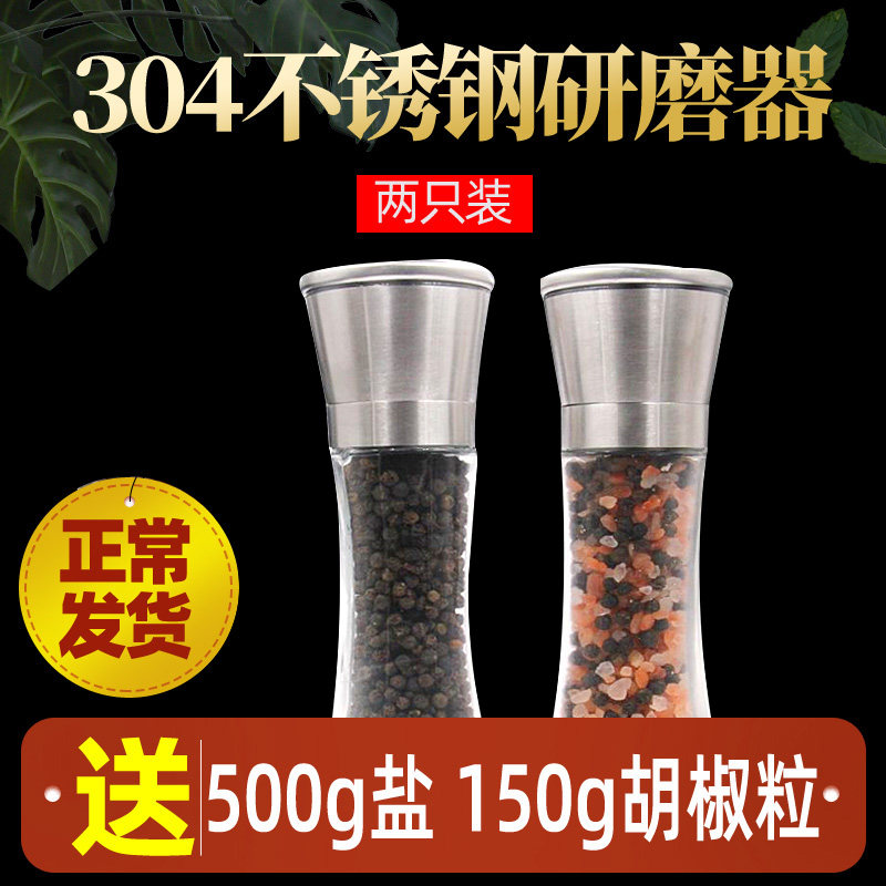 黑胡椒粒150g牛排调带2只304不锈钢现磨胡椒粉研磨器送玫瑰盐500g
