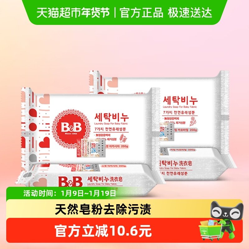韩国进口B&B/保宁婴幼儿新生BB洗衣皂200g洋槐皂*4块