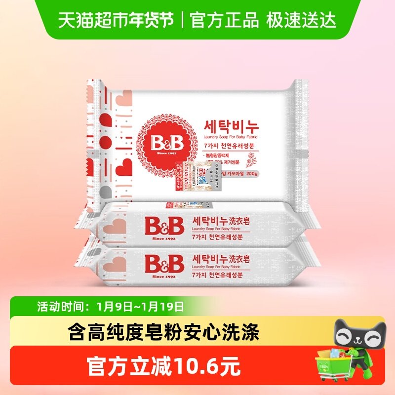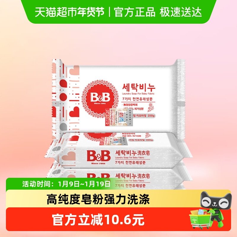 韩国保宁BB皂婴儿洗衣皂宝宝儿童专用抑菌去渍新生儿尿布200gx3块