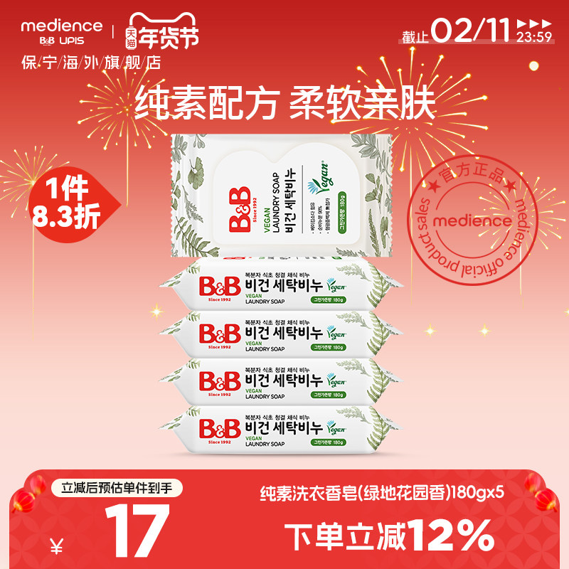 保宁婴儿BB皂无荧光儿童皂去污纯素绿地花园香洗衣香皂180g*5块
