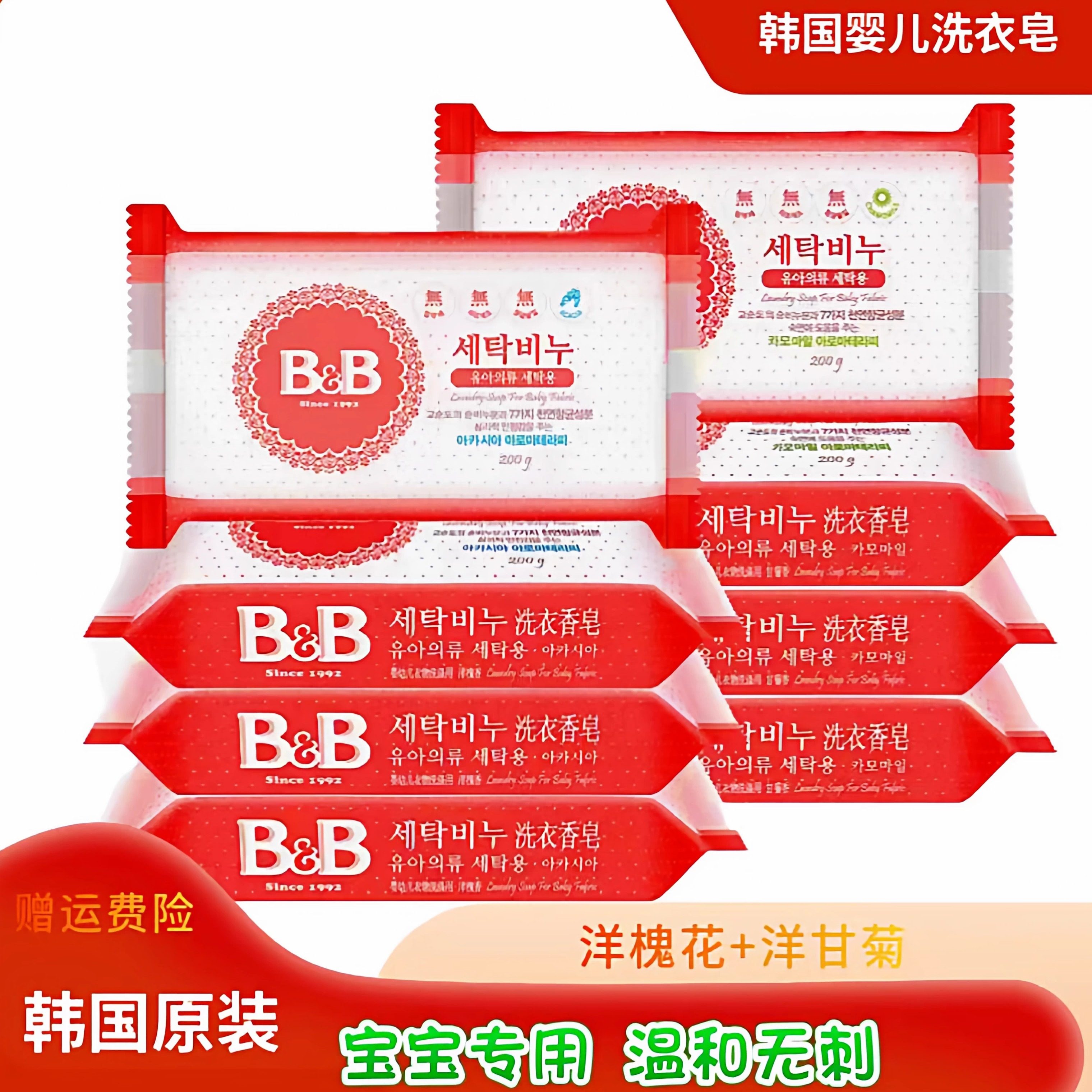 韩国保宁皂BB宝宝婴幼儿洗衣皂洋槐香甘菊香10块天然抗菌去污尿布