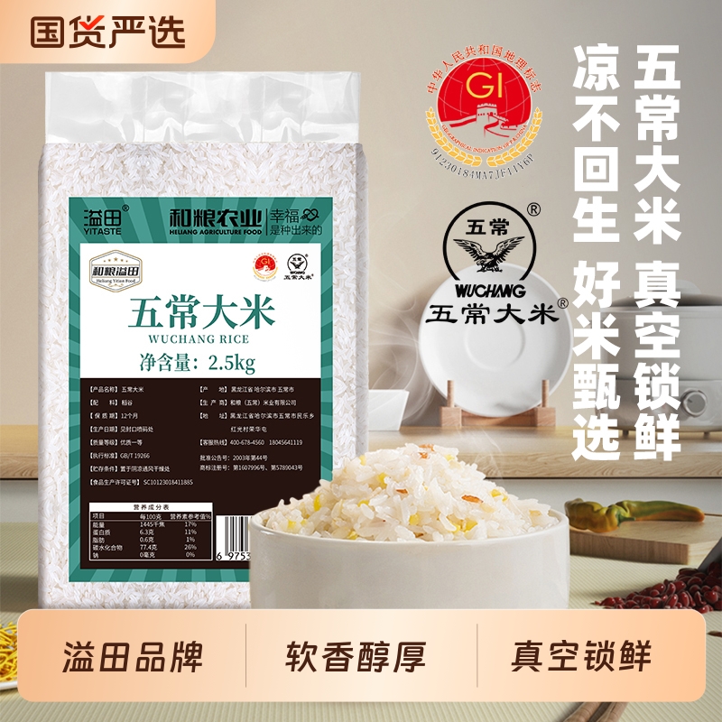 黑龙江五常大米2.5kg当季新米香米长粒优质谷米真空装标准执行
