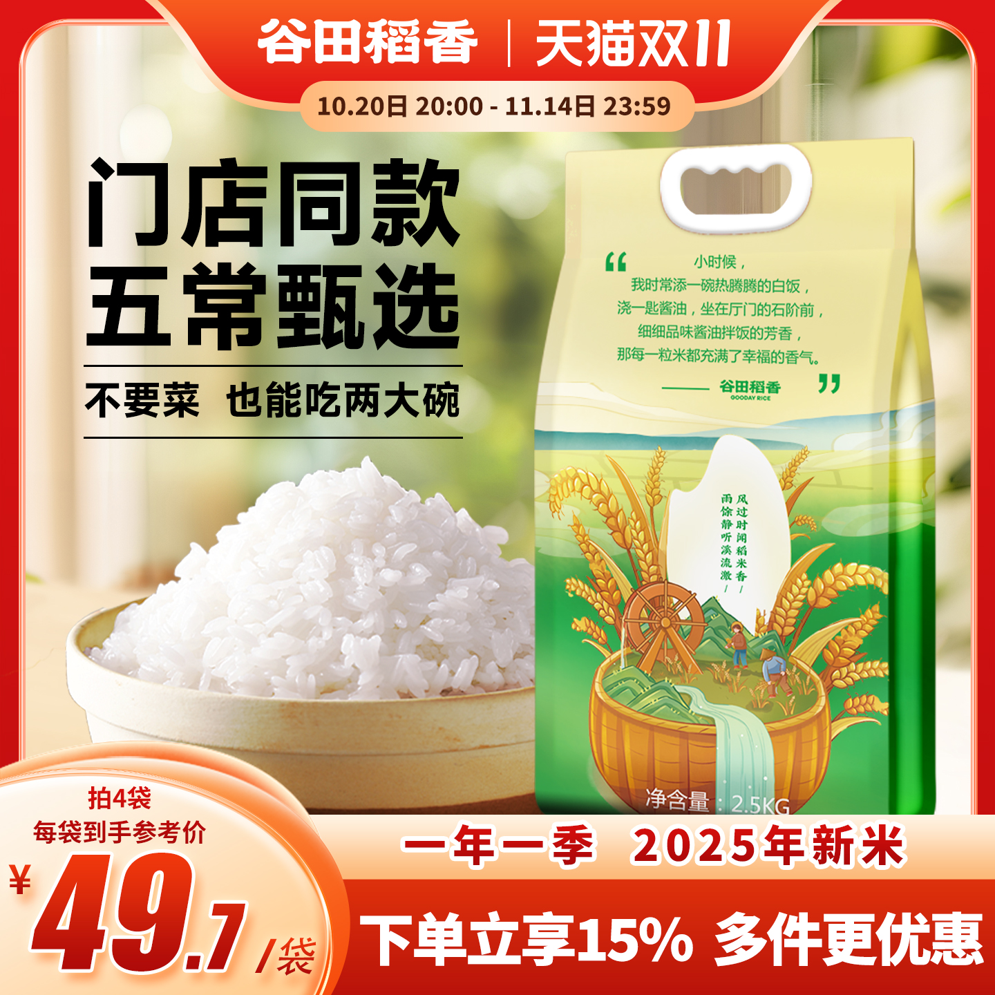谷田稻香东北稻花香2号大米5斤黑龙江五常大米2.5kg新米2025