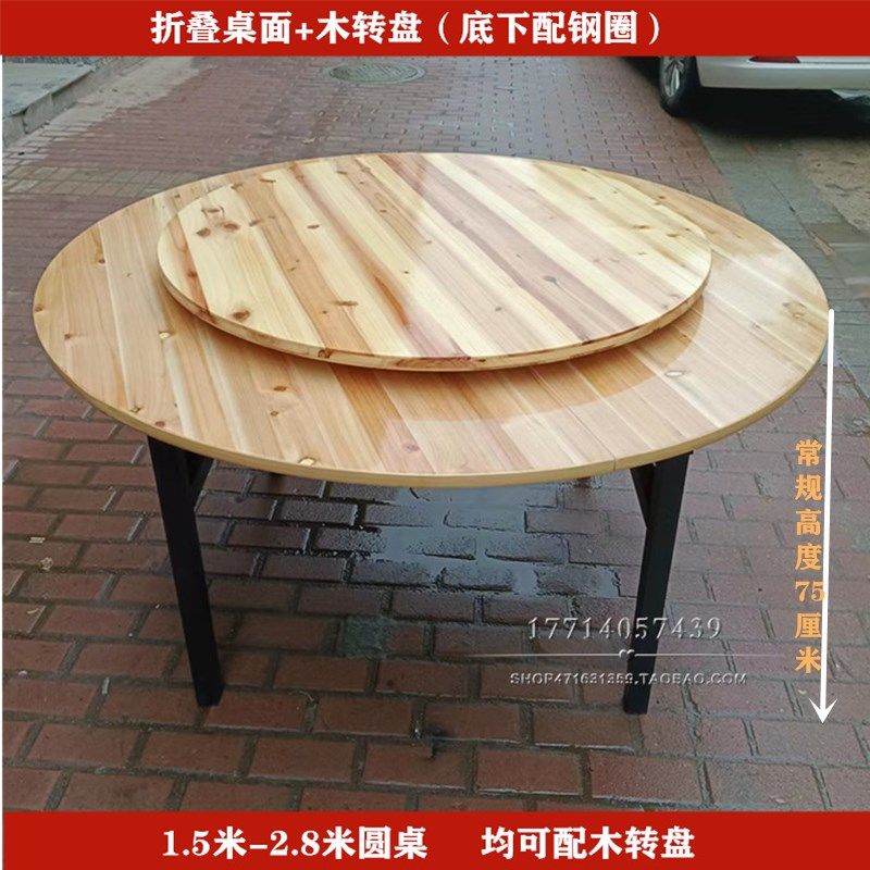 酒店饭店折叠大圆桌面实木圆桌转盘家用酒席圆形餐桌实木转盘包邮