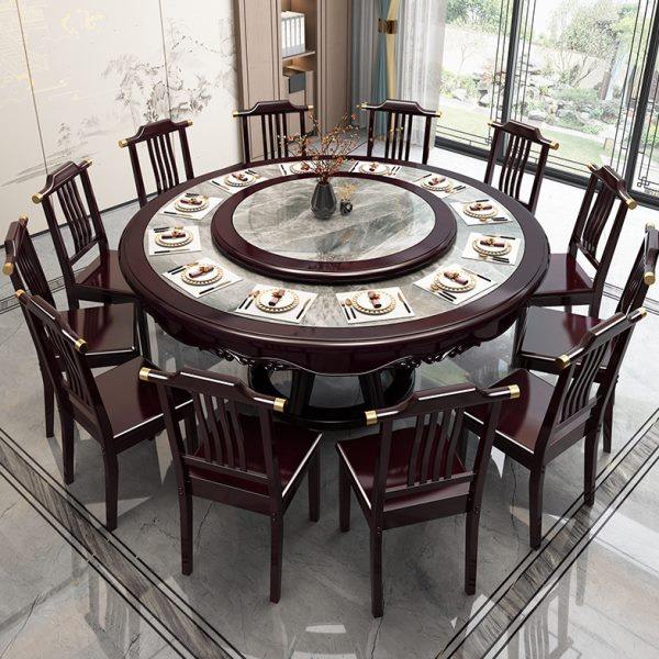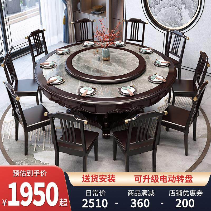 大理石餐桌新中式实木圆桌转盘家用餐桌椅吃饭饭桌岩板2m大圆桌子