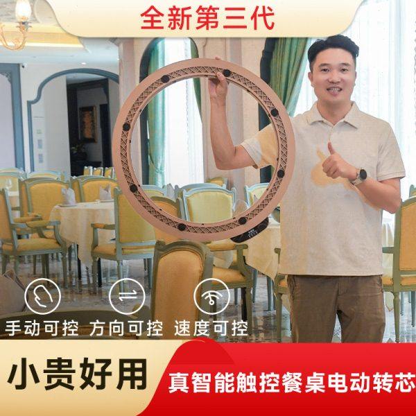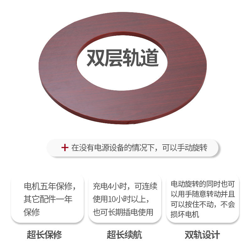 电动转盘餐桌家用实木圆桌转盘底座转台可充电调速圆盘自动旋转器