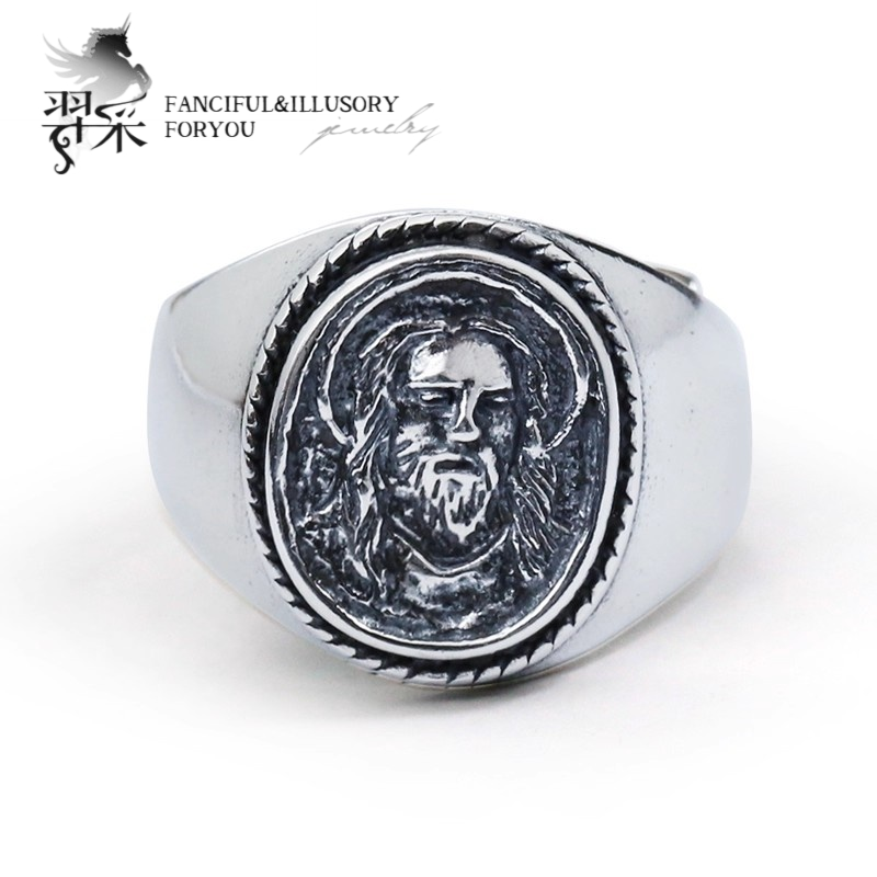 纯银戒指情侣复古中世纪雕刻男子气概纹章印章原创设计机车饰品新