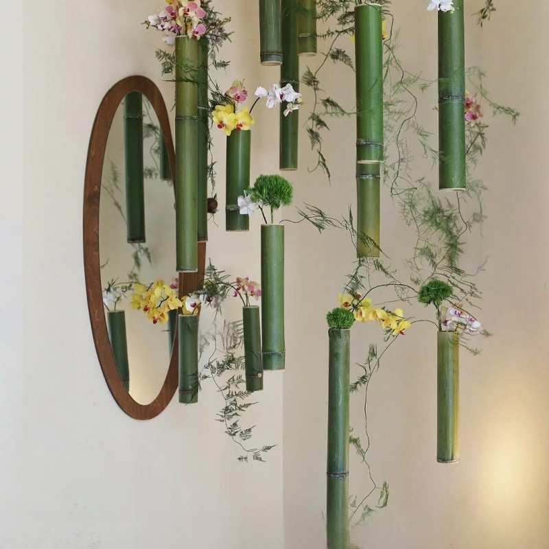 新鲜竹筒罐吊饰幼儿园环创国风造景中式环保挂件装饰绿色竹子花瓶