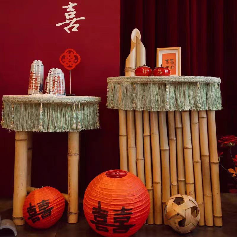 竹子桌子新中式美陈竹编订婚庆礼周岁宴生日环创布置装饰道具竹筒