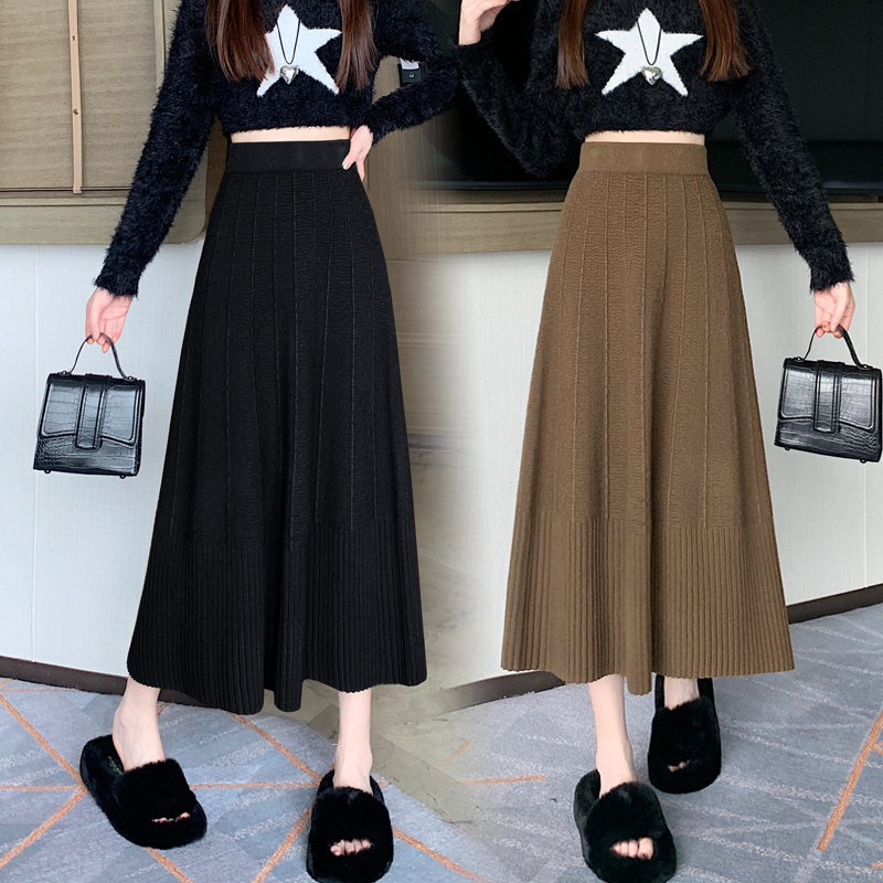 秋冬半身裙女士a字裙黑色长裙针织毛线裙高腰百褶裙今年流行裙子