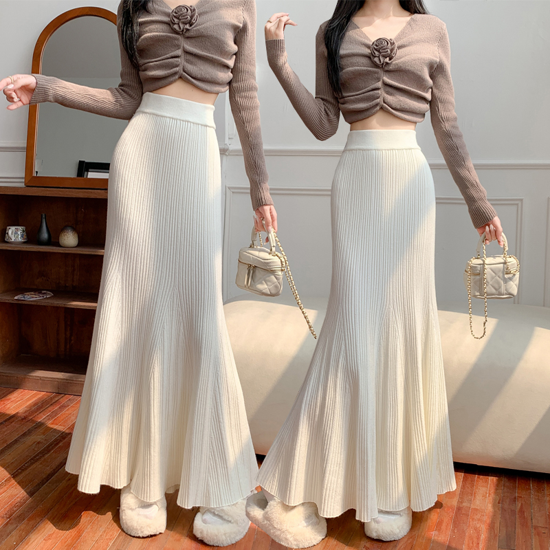 包臀半身裙女2025新款秋冬高腰修身鱼尾毛线长裙垂坠针织加厚裙子