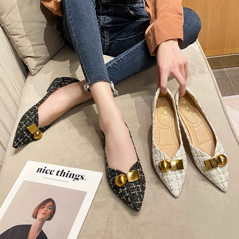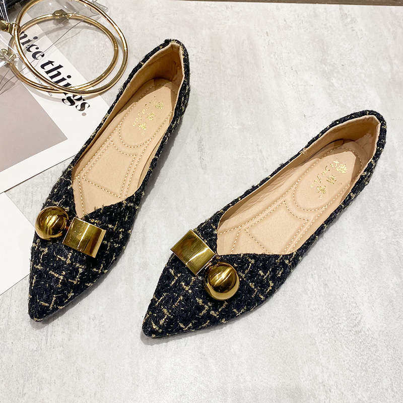 尖头单鞋女2021年新款女鞋韩版百搭豆豆鞋软底秋季平底平跟女单鞋