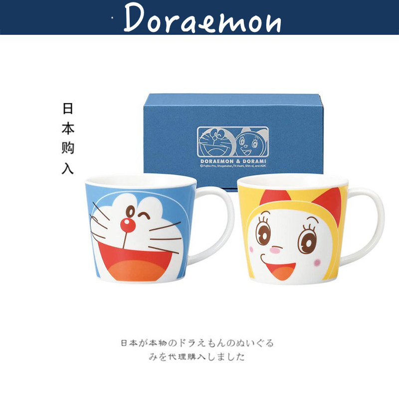 日本doraemon正版哆啦a梦叮当猫机器猫情侣一对陶瓷杯水杯咖啡杯