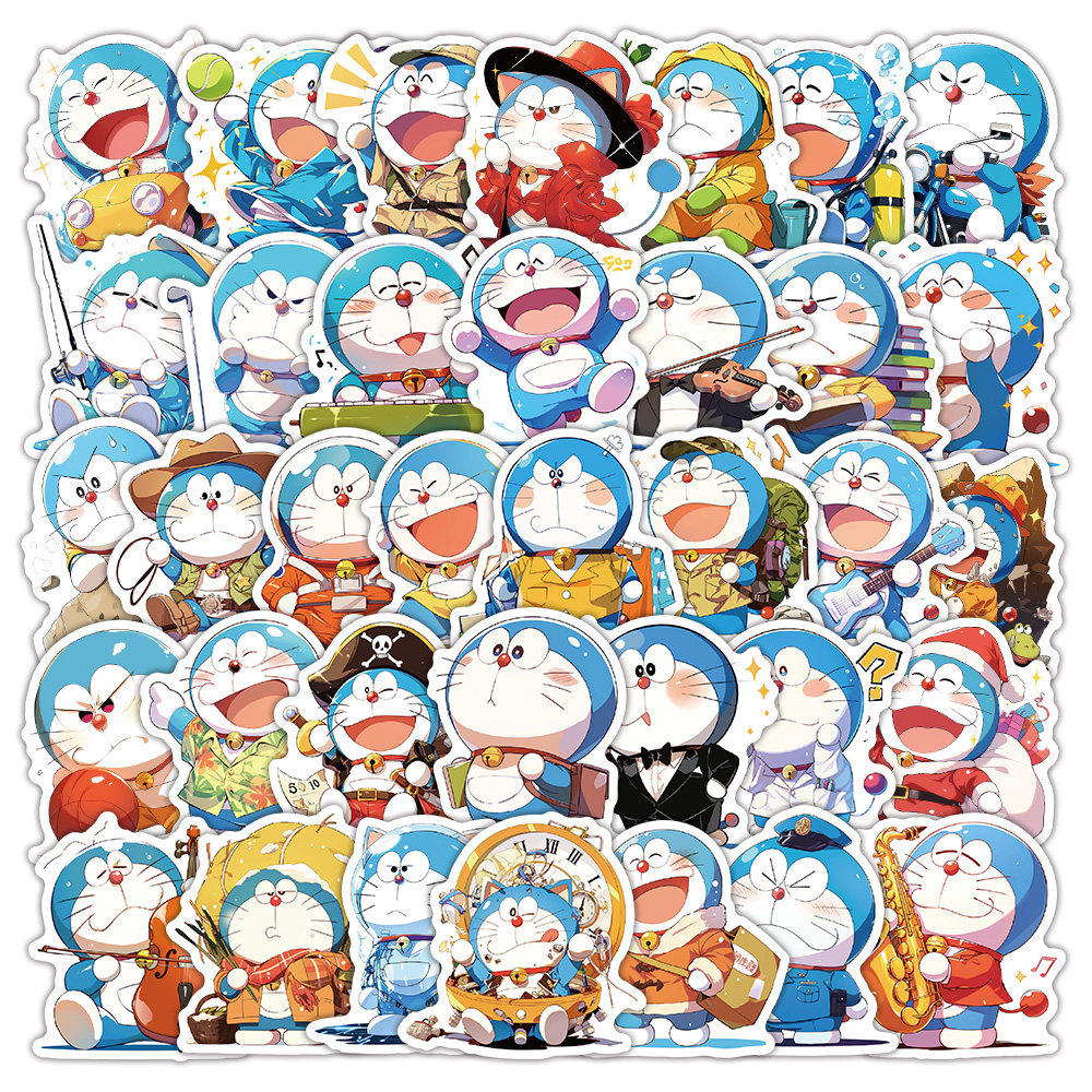 50张哆啦A梦卡通机器猫表情包可爱精美贴纸高颜值装饰笔记本头盔冰箱水杯汽车尾箱行李箱DIY门窗防水奖励贴纸