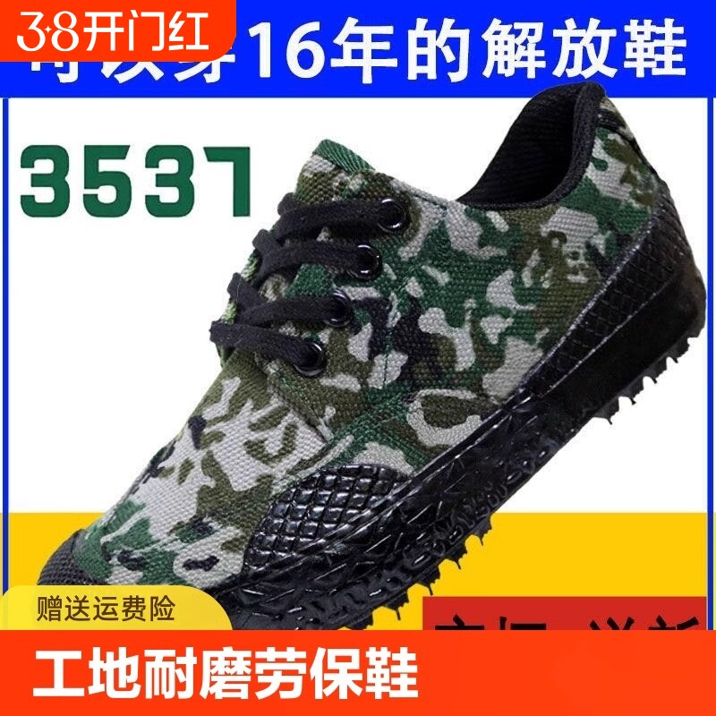 正品3537解放鞋男帆布训练鞋耐磨工地劳动劳保胶鞋防滑户外迷彩鞋
