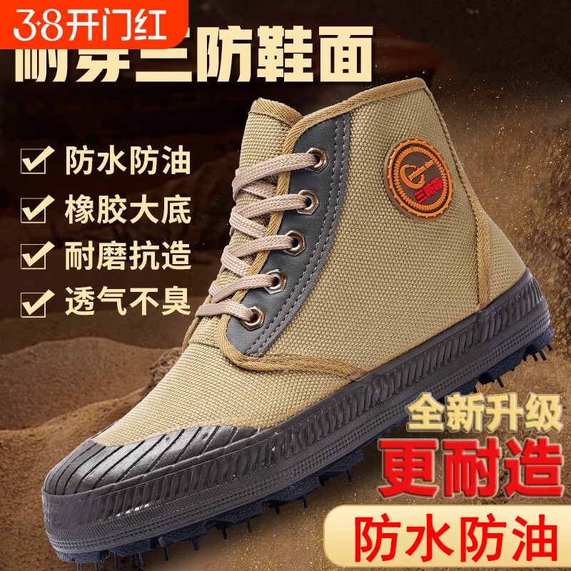 高帮耐磨解放鞋男工地防水防滑干活劳保黄胶鞋户外登山三防迷彩鞋