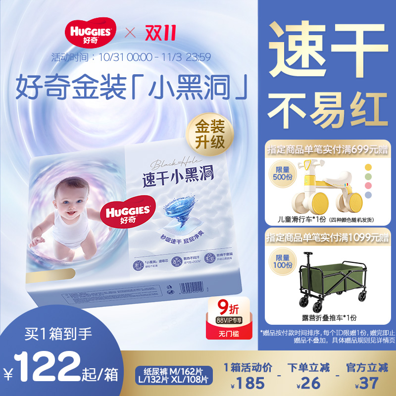 好奇金装速吸小黑洞婴儿日夜用纸尿裤M/L/XL速干不易红尿不湿官方