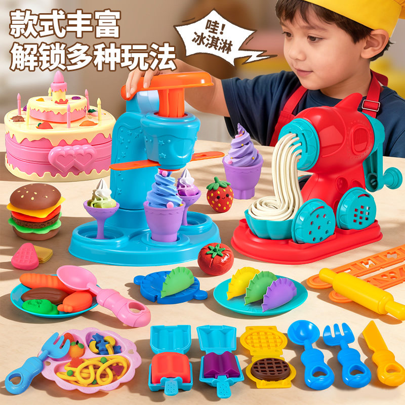 儿童彩泥安全无毒橡皮泥玩具幼儿园黏粘土模具女孩雪糕机生日礼物