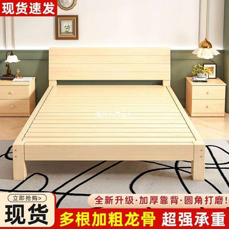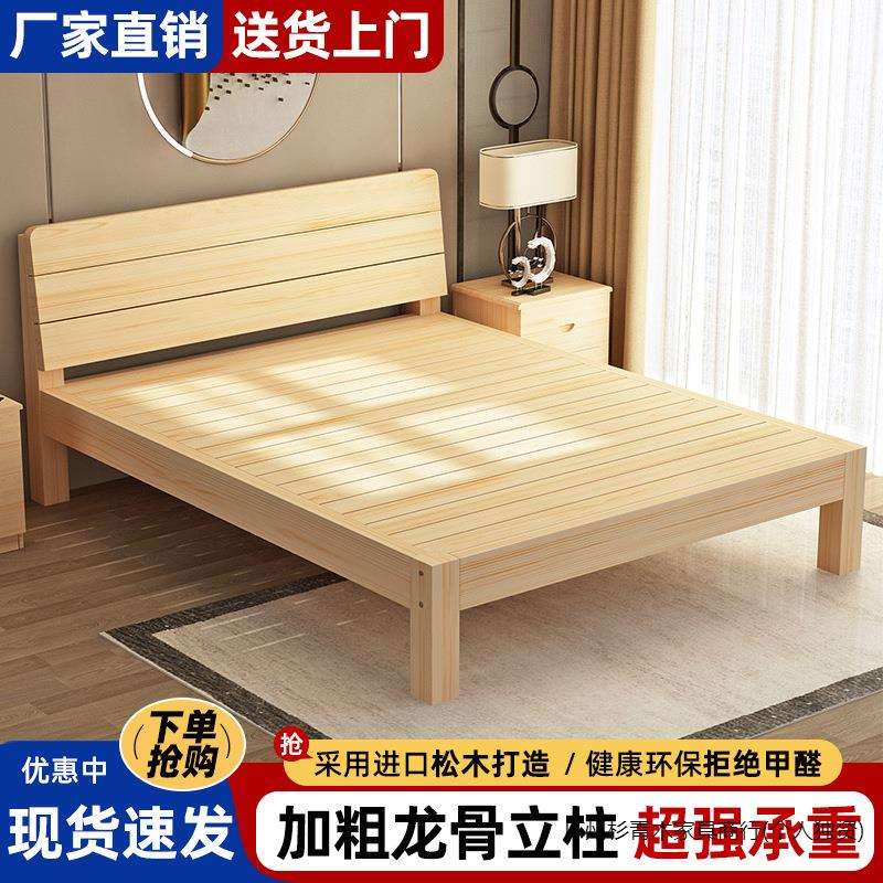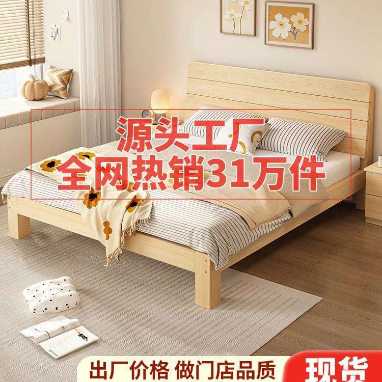 加粗加厚实木床简约现代双人床经济型单人床家用主卧出租屋实木床