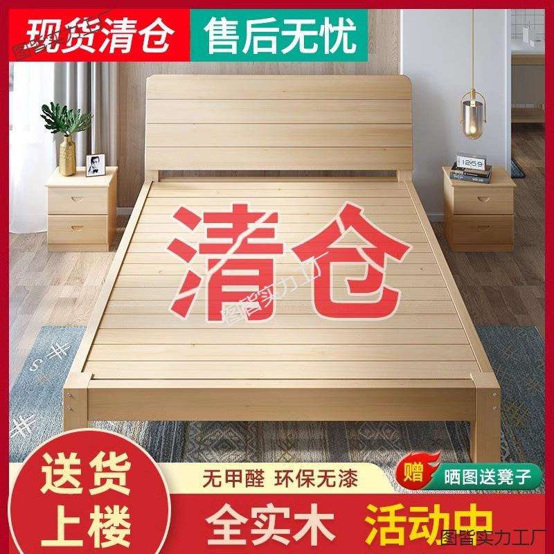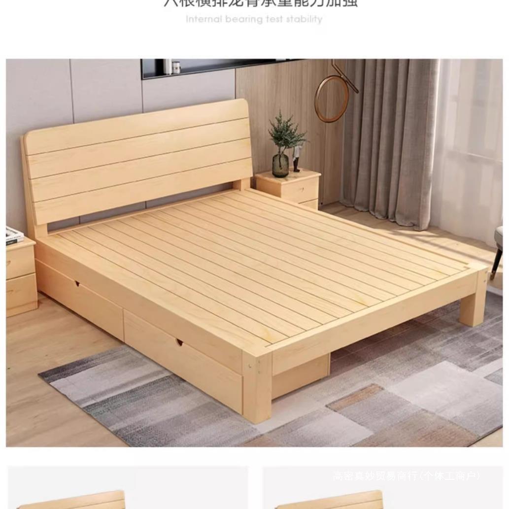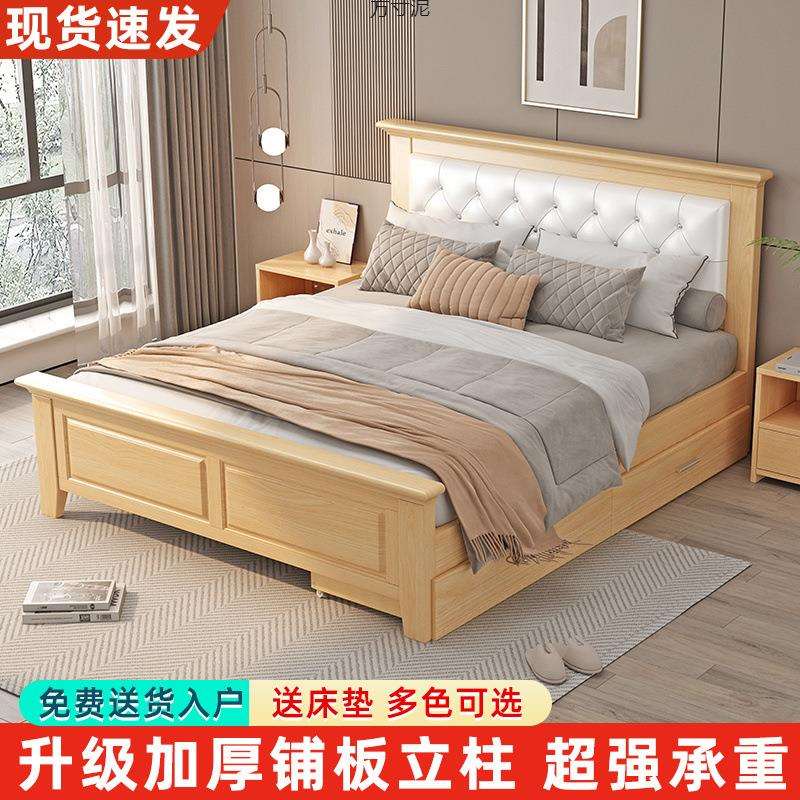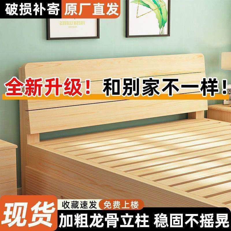 全实木床1米5双人床1米8储物家用经济型简约加厚1.2m出租房单人床