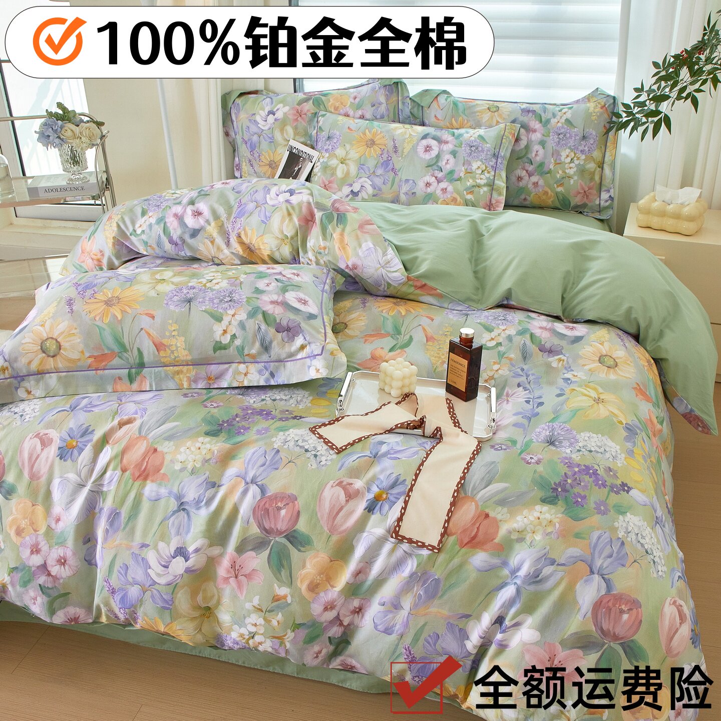 高档铂金全棉四件套100%纯棉2025新款被套床单床笠款田园床上用品