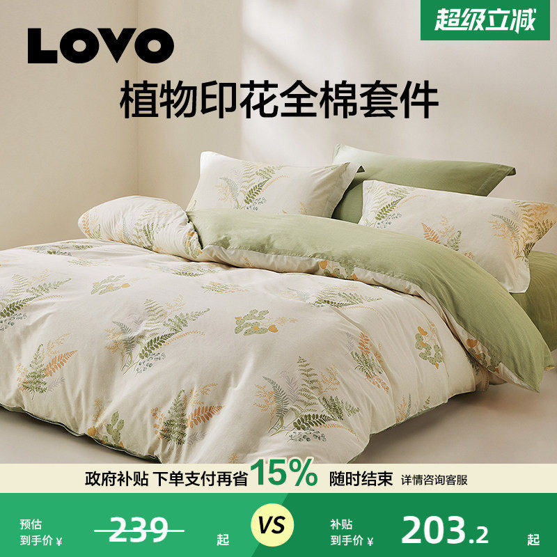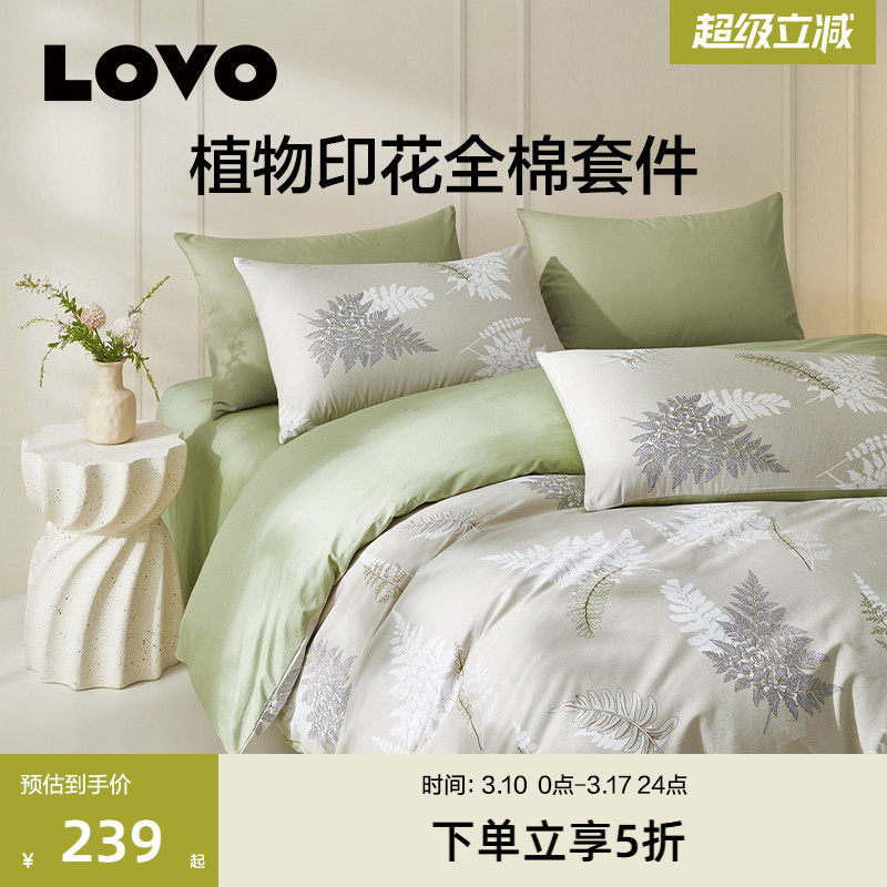 罗莱生活LOVO乐蜗家纺床上用品全棉纯棉四件套南法田园床单三件套