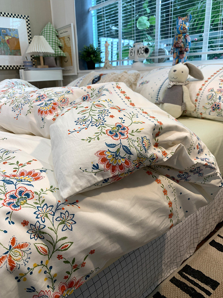 100全棉复古田园床上四件套ins纯棉亲肤被套床单床笠款宿舍三件套