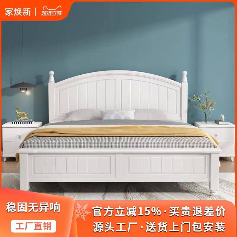 美式实木田园1.8米1.5经济简约白色公主奶油风储物儿童卧室双人床