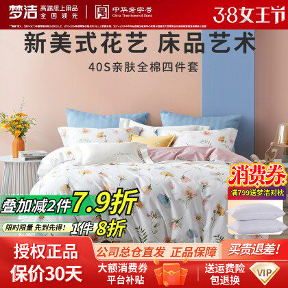 梦洁家纺正品新中式简美小清新全棉纯棉四件套套件田园床单248