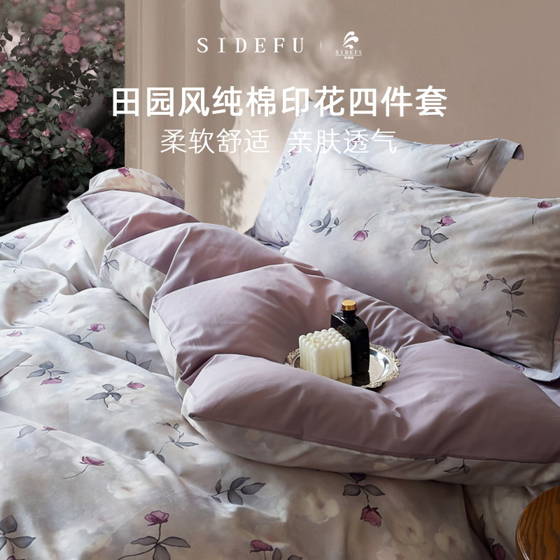 斯得福美式紫色四件套纯棉高级田园床上用品床单高质量全棉四件套