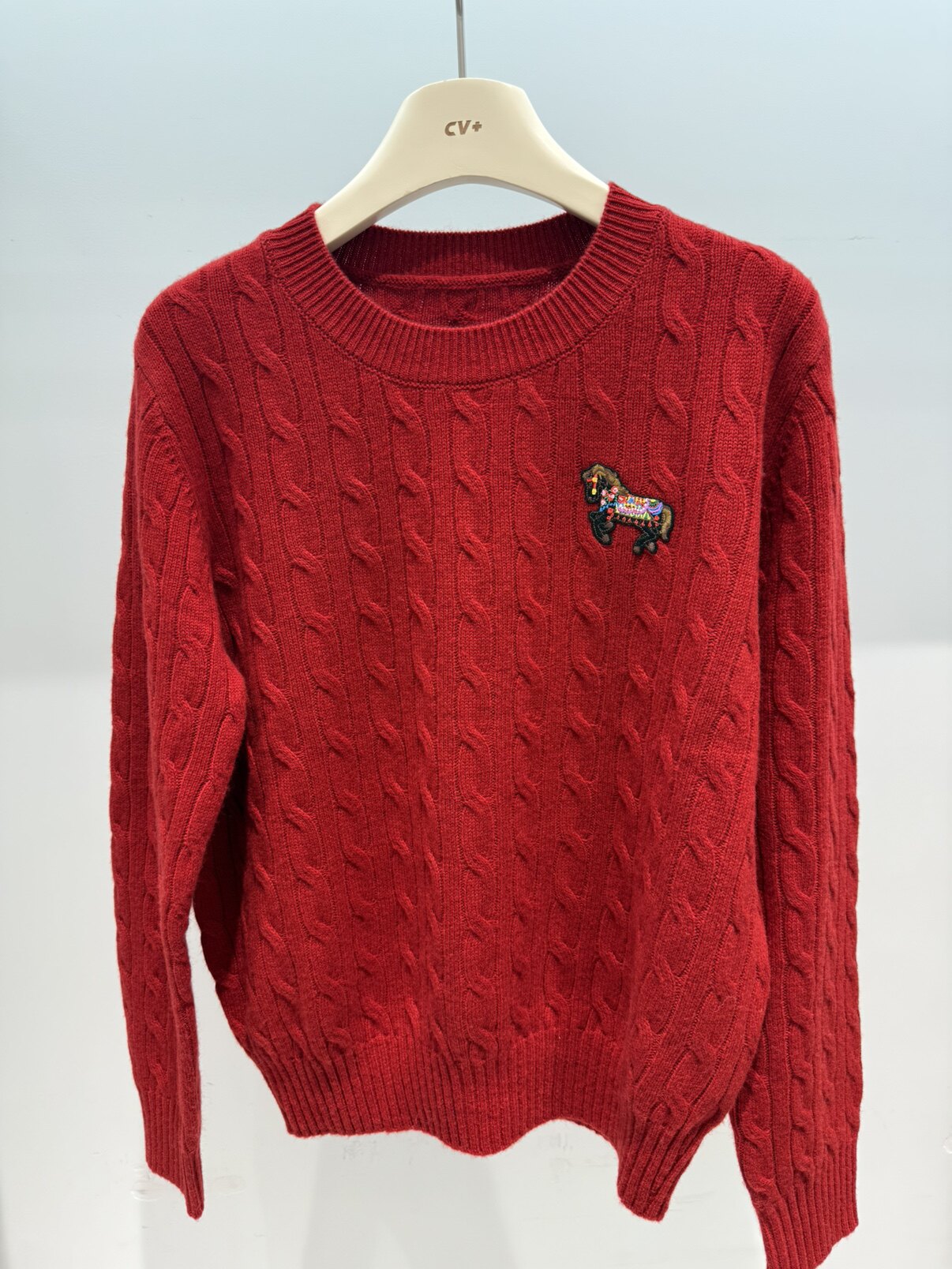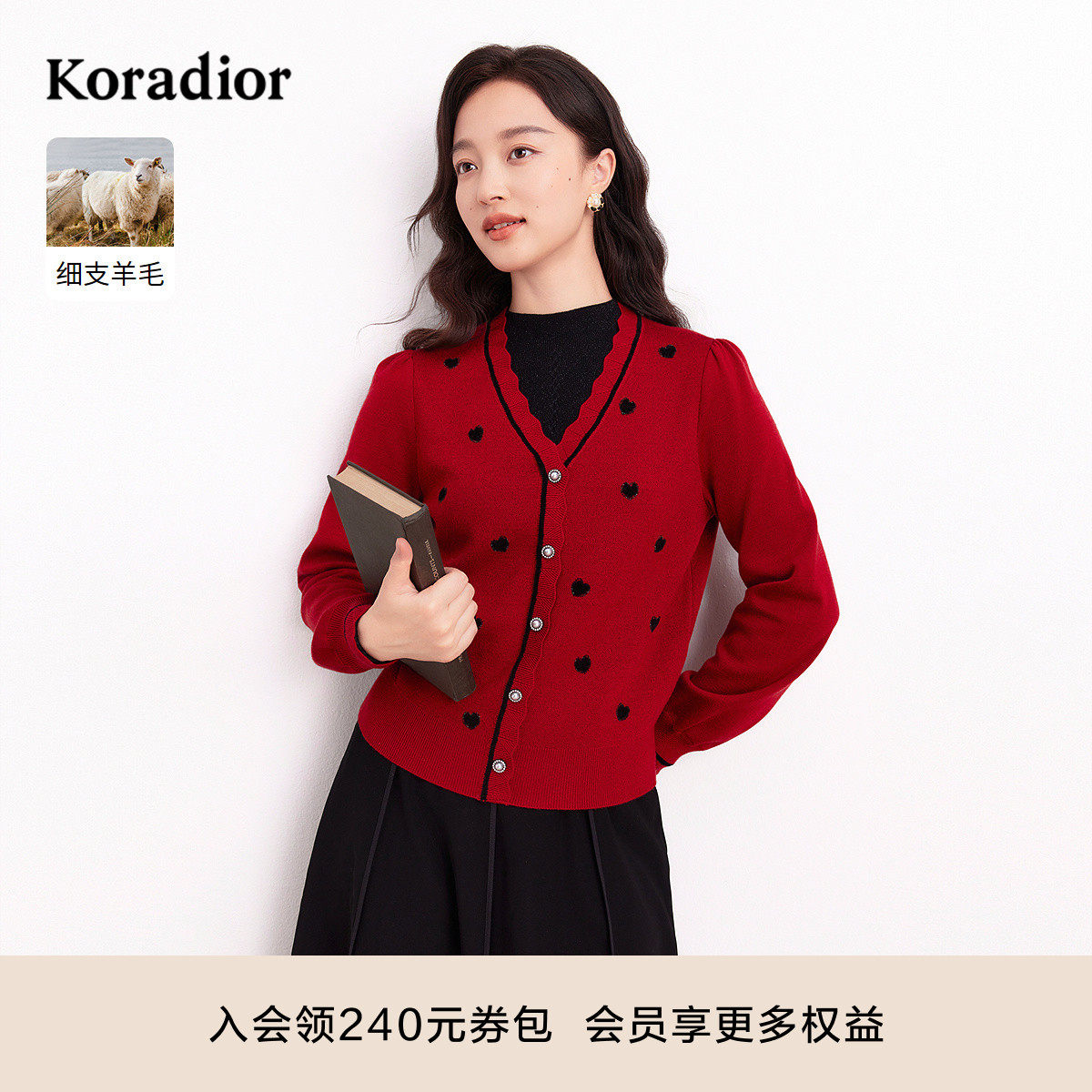 koradior珂莱蒂尔红色通勤气质淑女细支羊毛套头针织衫女