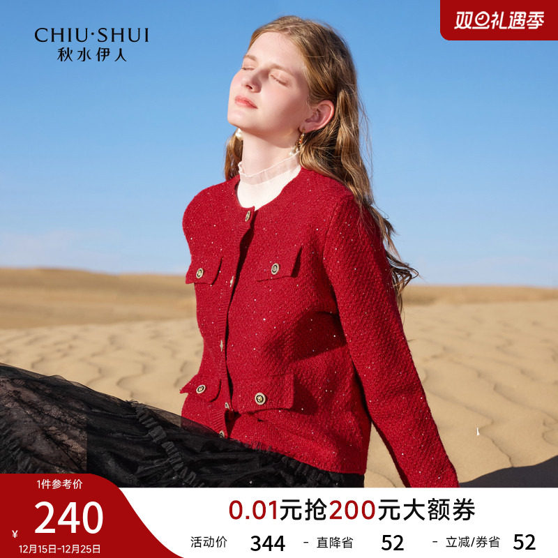 秋水伊人红色小香风针织开衫2025年冬季新款女法式名媛风圆领毛衣