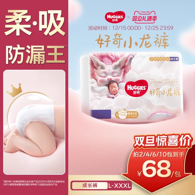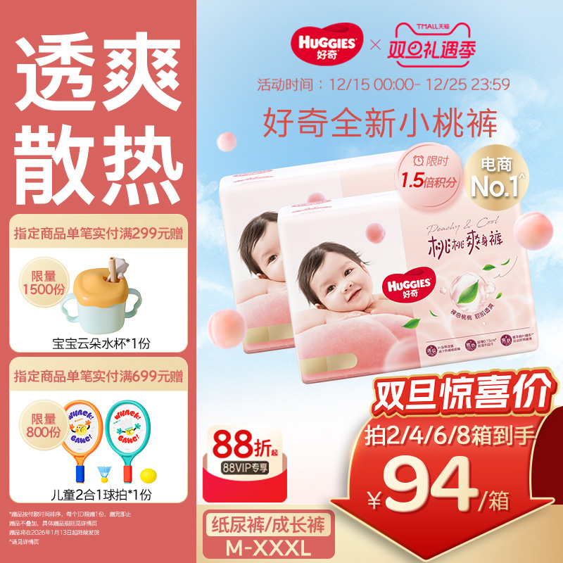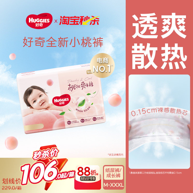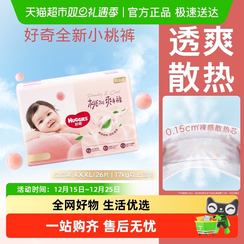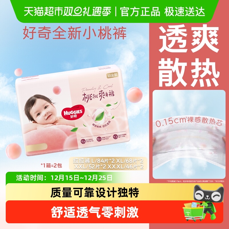 【爆款装】好奇铂金小桃裤纸尿裤S-XL拉拉裤XL-3XL超薄透气尿不湿